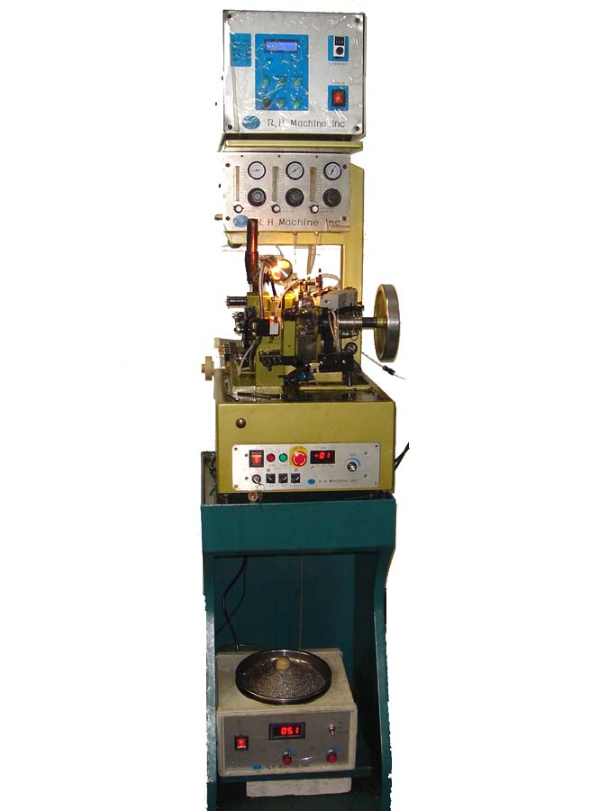 Automatic plasma welding machine for the production of single, double and triple curb,rhombus chain and single, double and triple cable chain. Suitable for different materials including AG,AU24KT and PT.It's cams are movable having various positions for different chain settings for 7 basic chain designs, from Cable, Curb to Corda Chain, with the help from our Chain Hammering Machine(FSCL-B)and Chain Compacting Machine(FSTM-B),the 7 basic chain designs can transform more than 40 different varieties.