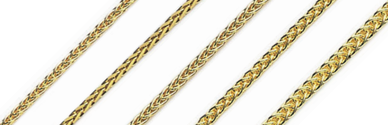 The double Spiga is a chain with a round section allows the finishing in its original forms and the flat or oval beatings. Together with the new proportion, is particularly suitable for a small, round chain without